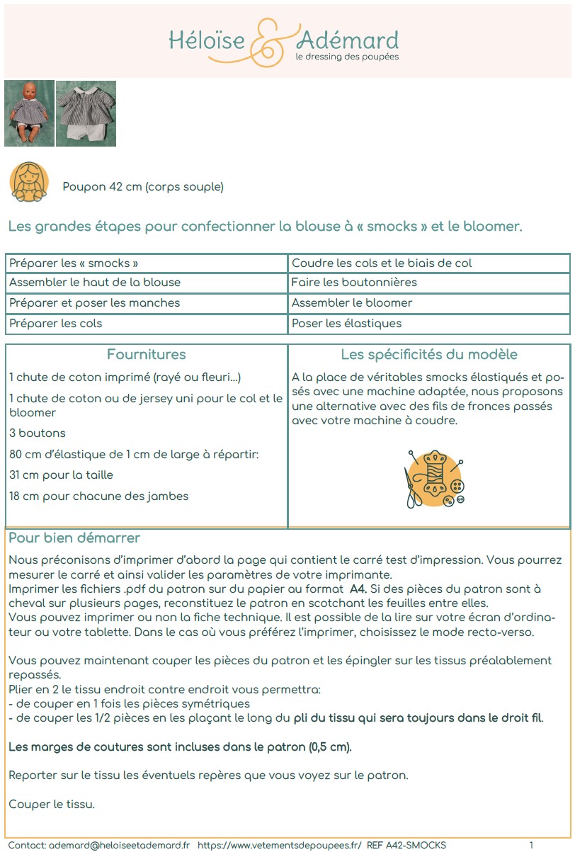 La blouse à smocks et le bloomer du poupon de 42 cm sont-ils faciles à coudre?