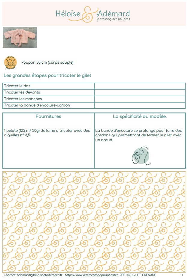 Ce gilet convient parfaitement au poupon de 30 cm. C’est le poupon Corolle Bébé Bain ou Bébé Câlin. Mais si le poupon que vous souhaitez habiller n’est pas le poupon Corolle et que vous hésitez, il vous suffit de nous envoyer un message via le formulaire de contact. Vous nous préciserez les mensurations de votre poupon et nous vous guiderons dans vos choix.