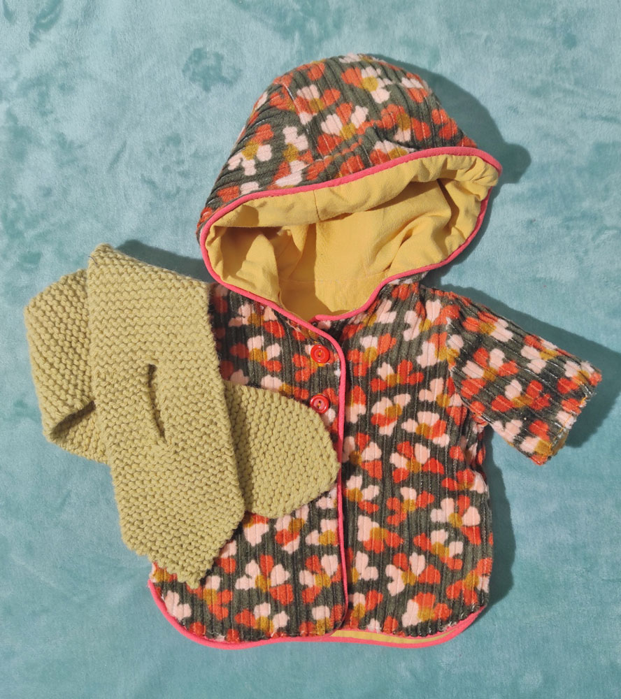 Ce manteau doublé et à capuche va à la poupée de 40 cm – Poupée Petit Colin ou Modes & Travaux.