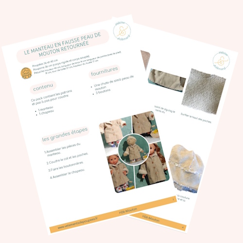 Téléchargez le patron qui vous permettra de coudre un manteau et un chapeau à votre poupon ou votre poupée ou votre peluche. A coudre dans une simili peau de mouton retournée, les pièces sont assemblées bord à bord au point de zig-zag.