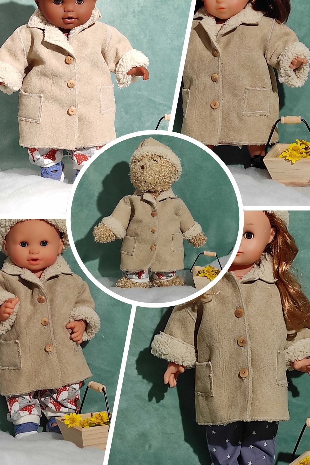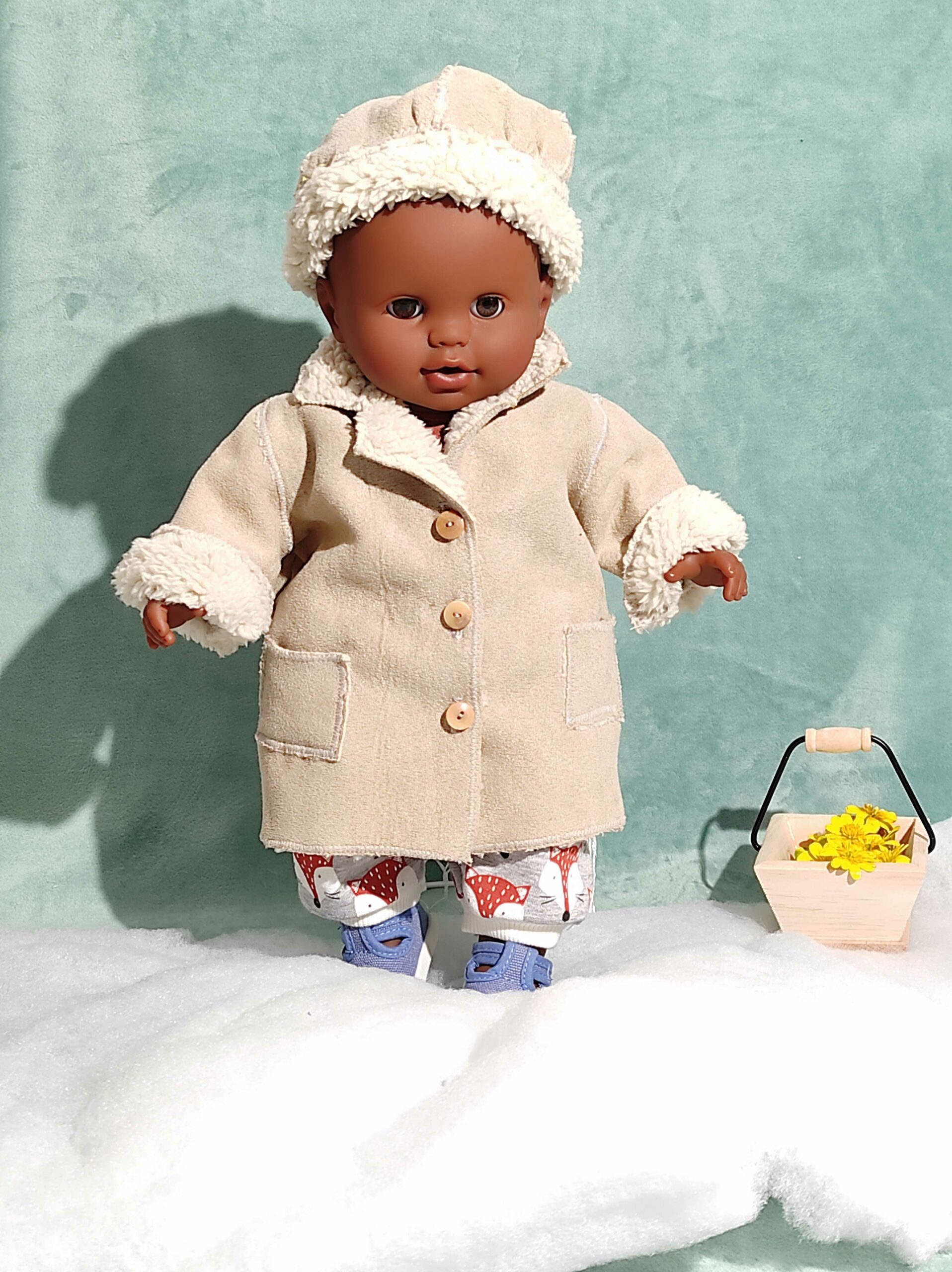 Tandis que la poupée de 36 cm portera le manteau ample, le poupon de 36 cm le portera plus ajusté.