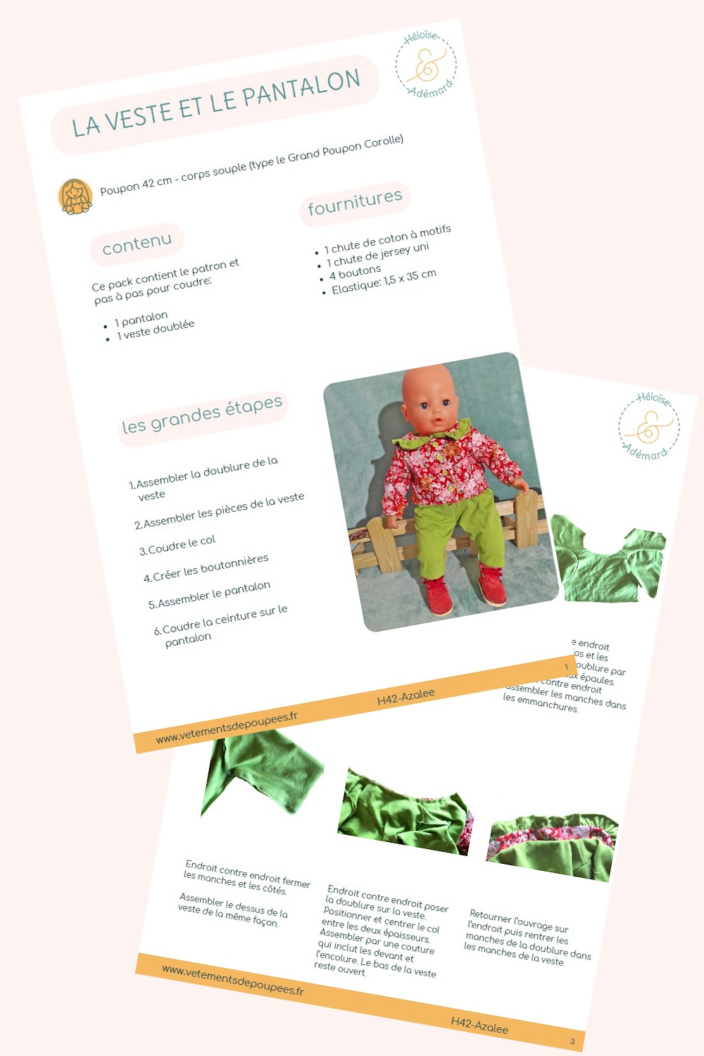 🪡 Un patron pour coudre un ensemble pantalon et veste pour les poupons de 42 cm.