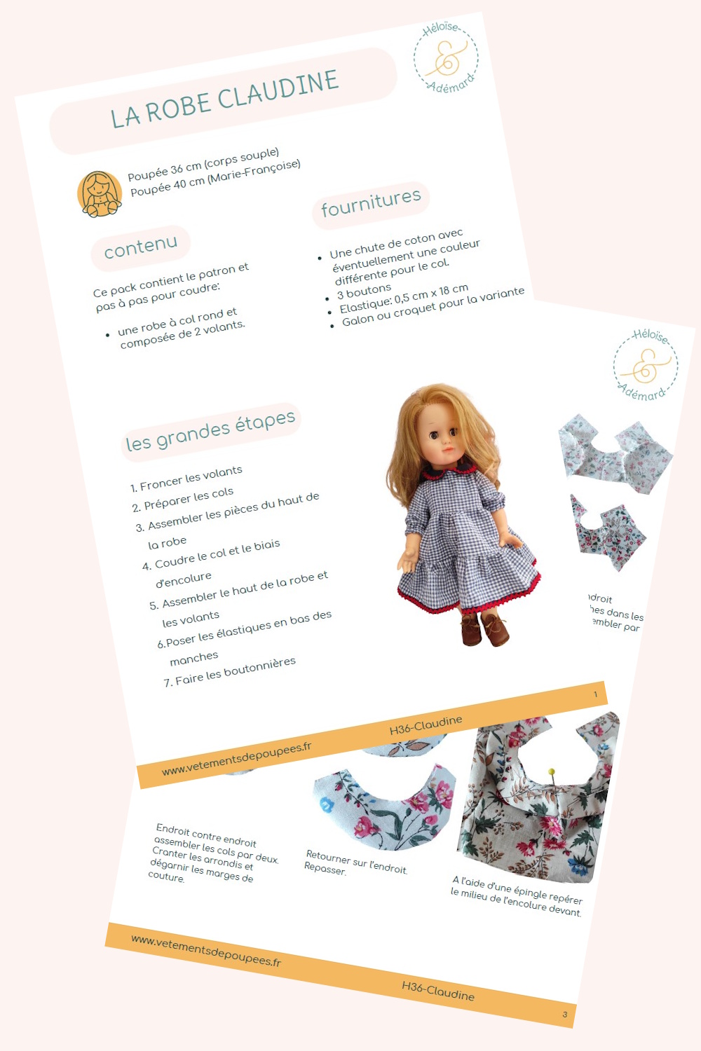 Ce patron de couture vous permet de réaliser une robe à volants pour la poupée de 36 cm (corps souple) et 40 cm (Marie-Françoise). Grâce à des explications claires et détaillées, vous n’avez pas besoin d’être experte pour réussir ce modèle.