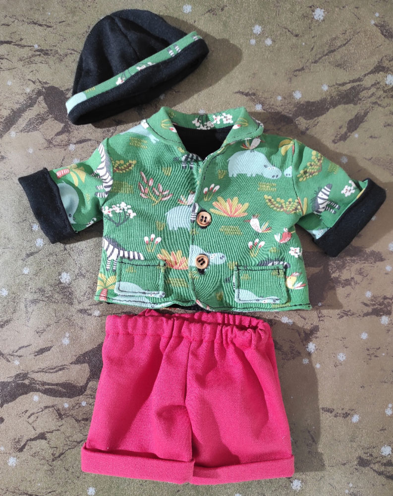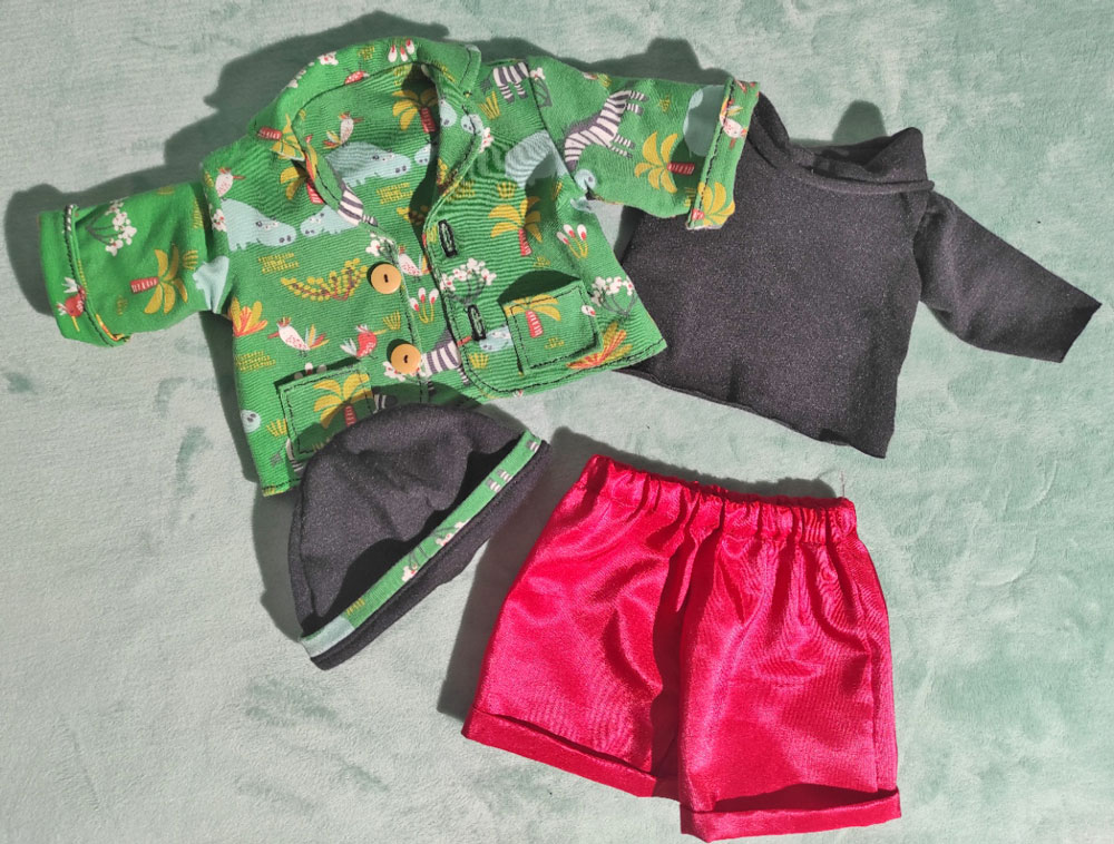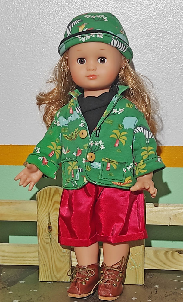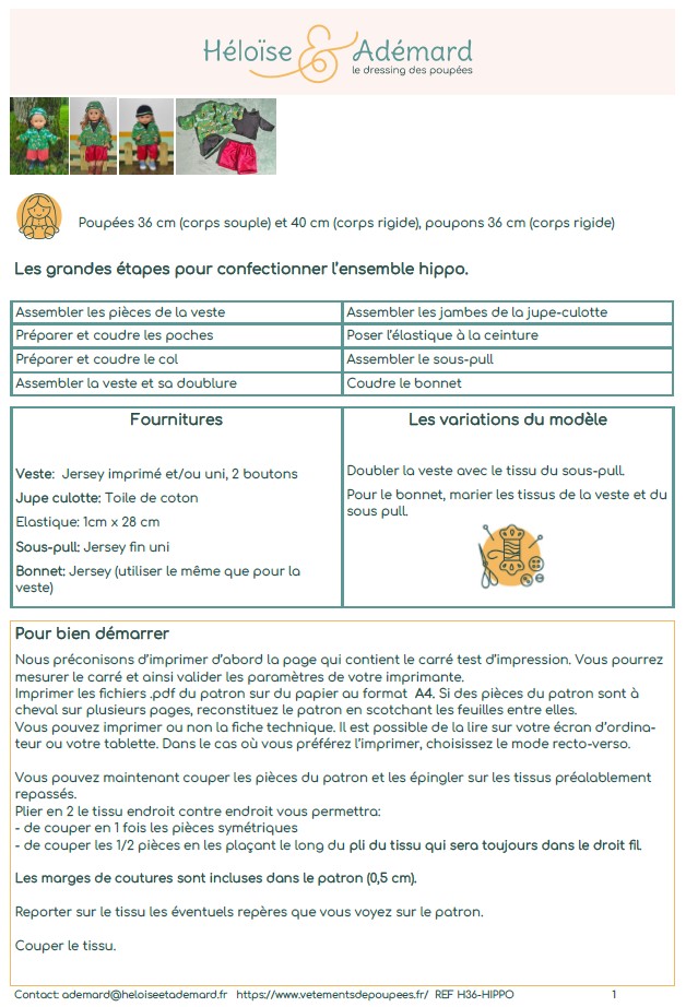 Vous allez adorer cet ensemble à coudre pour les poupées de 36 et 40 cm et le poupon Emma (36 cm-corps rigide). Il se compose d’une veste, une jupe-culotte, un sous-pull et un bonnet. Il s’appelle Hippo en référence à l’imprimé animal que nous avons choisi.
