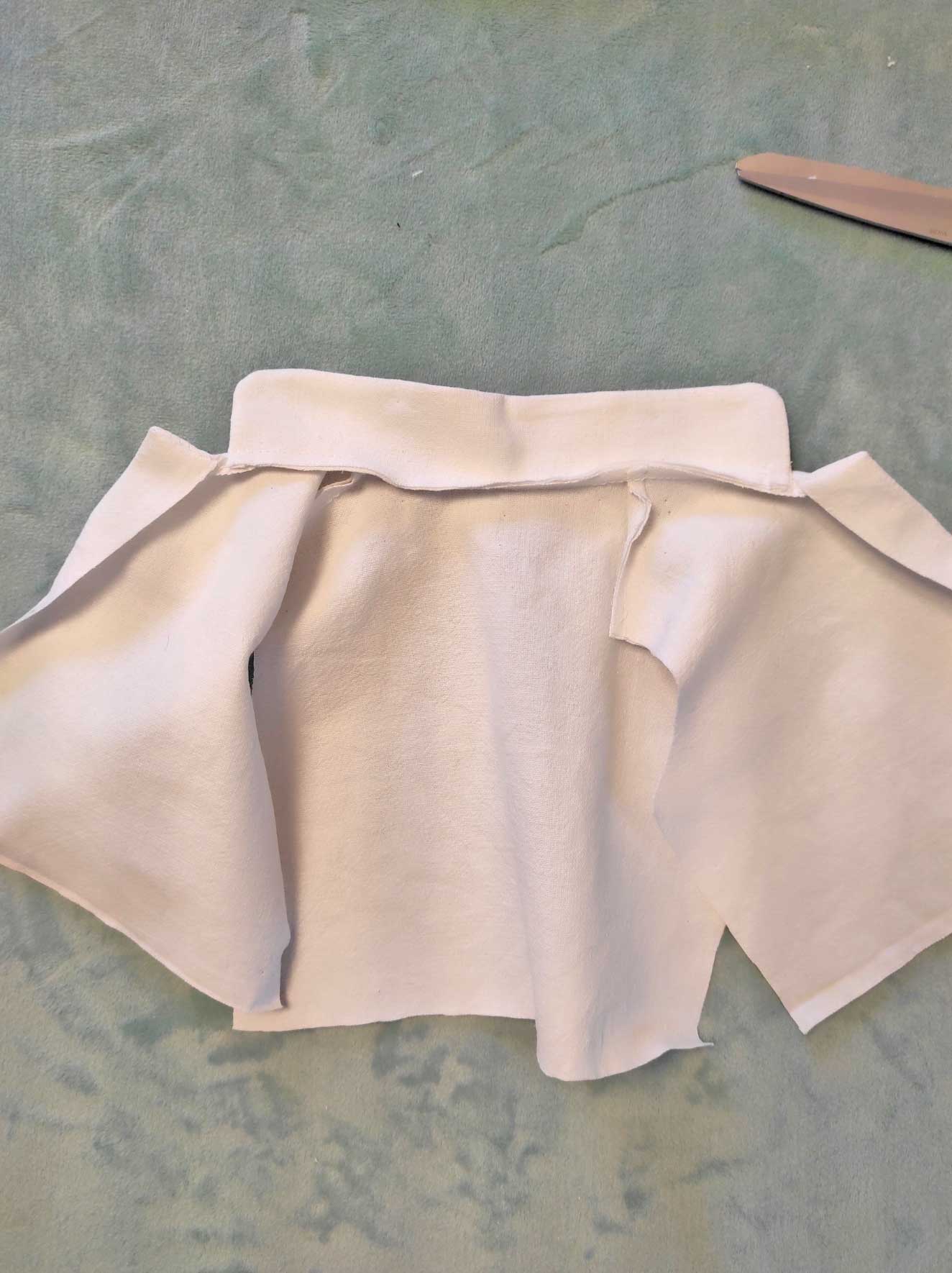 Centrer le col sur l'encolure du vêtement de poupée